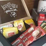 يوجد في المبنى أيضًا منطقة المطبخ الصغير المجهز مع الغلاية الكهربائية وثلاجة وأدوات المطبخ.